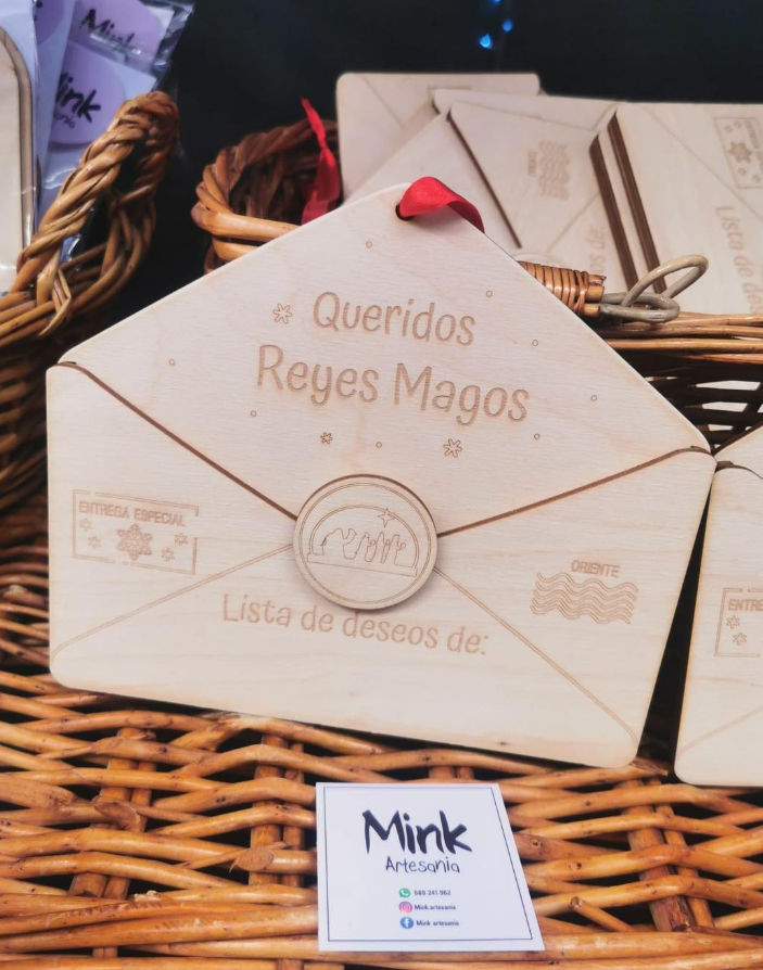 Sobre de madera grabada para la carta de Reyes. Un detalle único y artesanal.