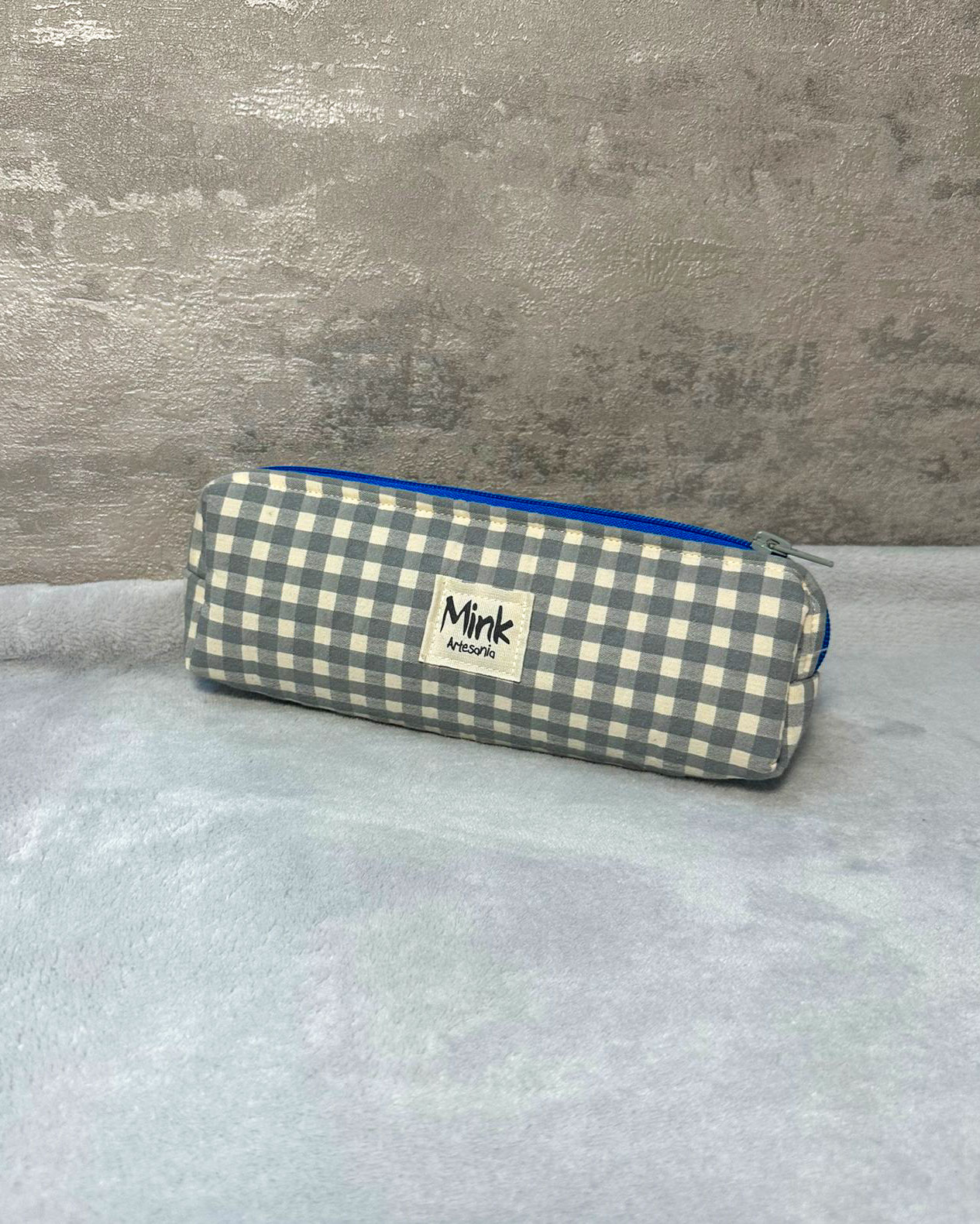 Estuche práctico y resistente a cuadros en tonos beige y gris, perfecto para llevar bolígrafos, maquillaje o pequeños accesorios siempre organizados. Su diseño compacto lo hace ideal para usar en el día a día, llevarlo en el bolso o en la mochila.